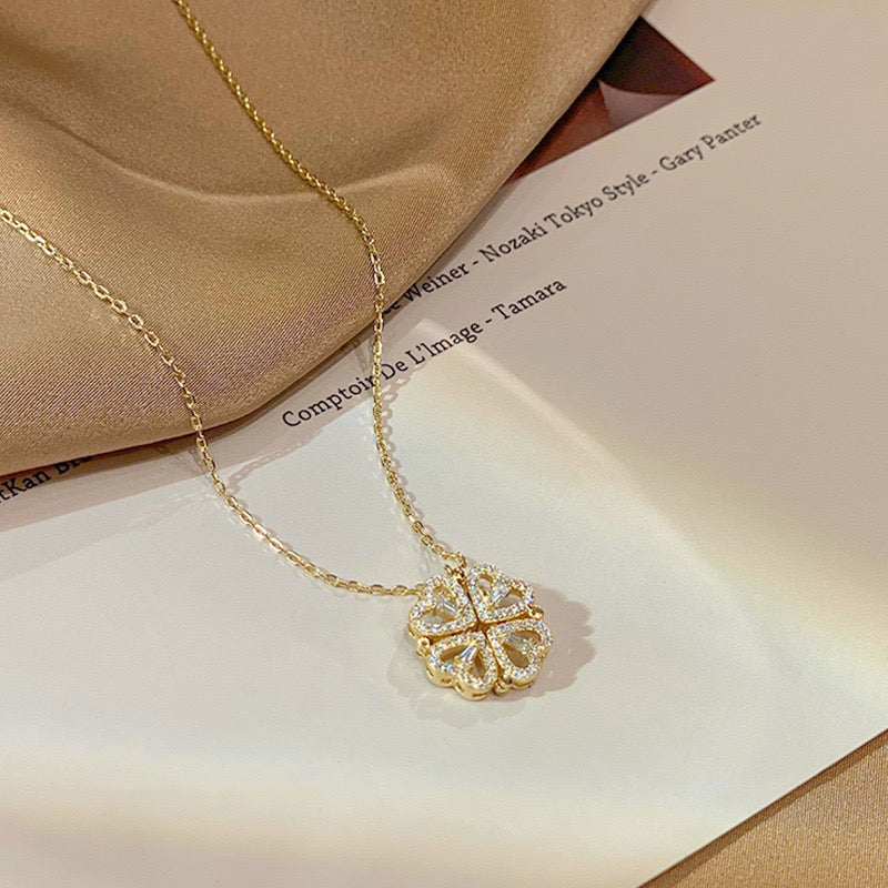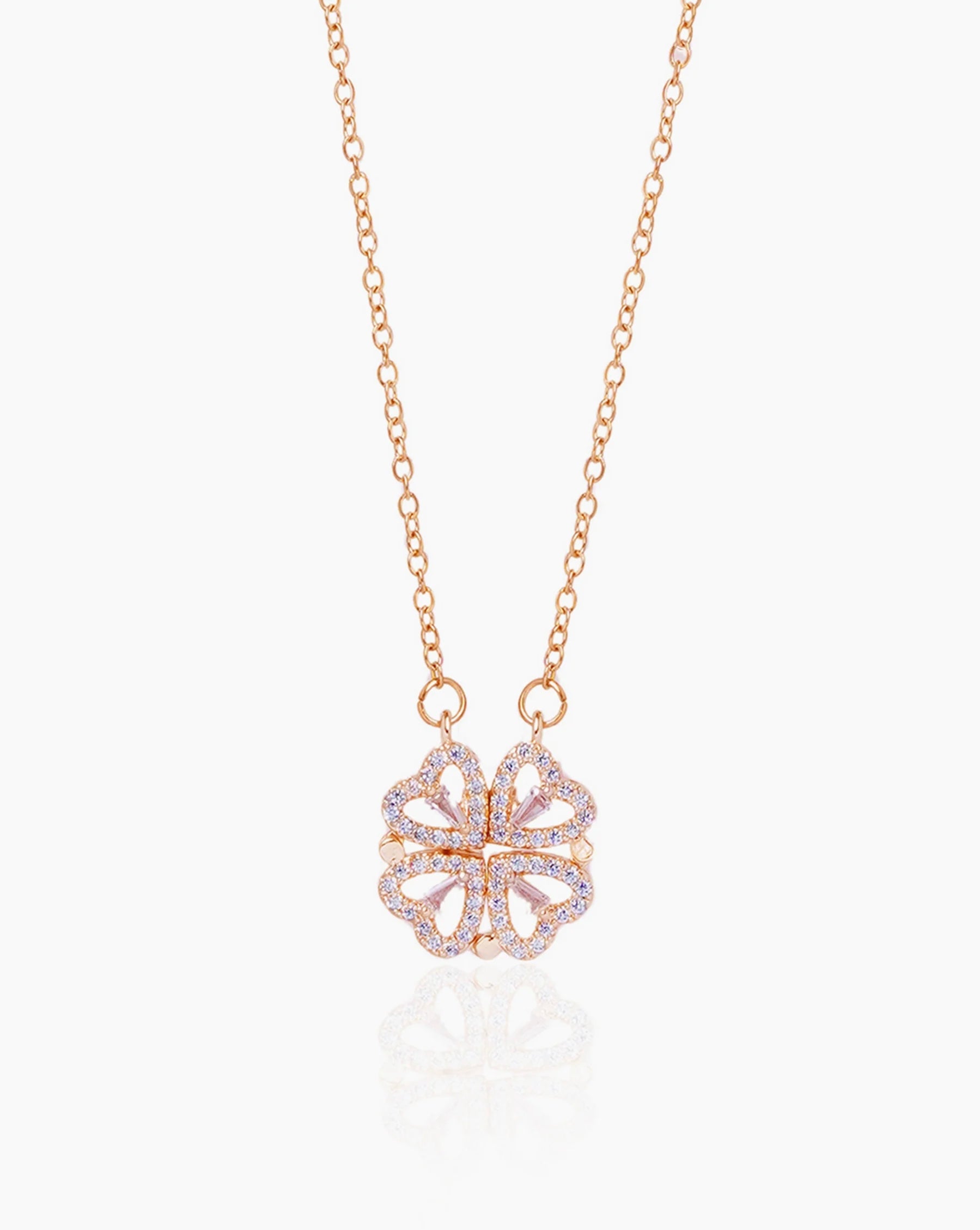 Four heart-shaped pendants connect seamlessly, forming a beautiful flower that symbolizes love, harmony, and unbreakable bonds