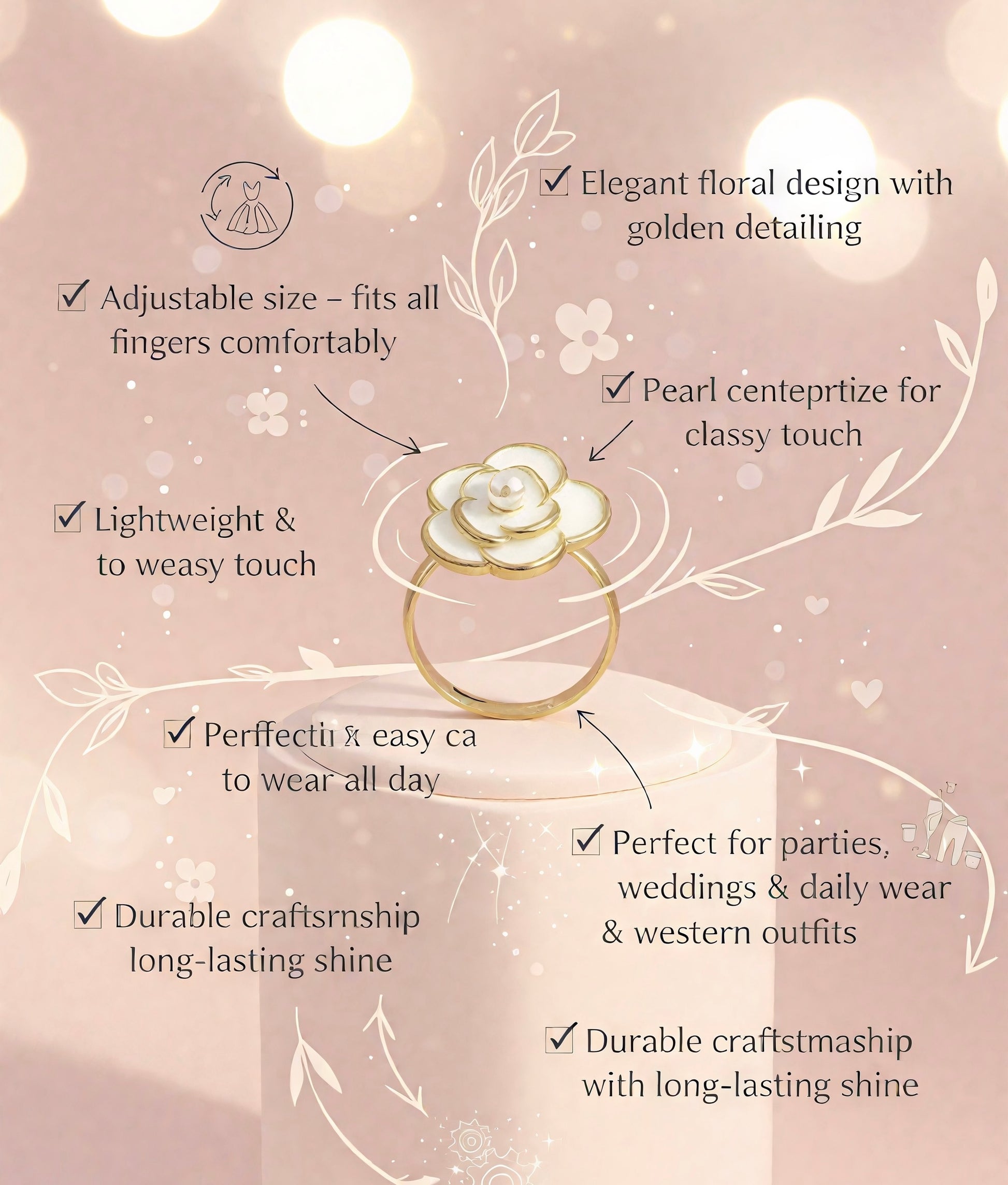 Gold-tone finish with petal detailing